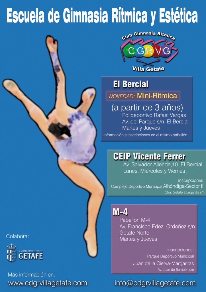 Comienza el 4 de septiembre en la Escuela del Bercial en el polideportivo Rafael Vargas, MINI RÍTMICA para niños y niñas a partir de tres años donde el principal objetivo es que conozcan esta modalidad a través del juego, la música y el trabajo en equipo.